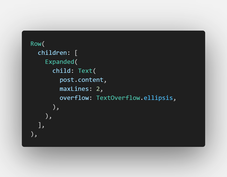 이 문제를 해결하기 위해선, Row 안에 Text 쪽에 maxLines 랑 overflow를 넣으면 된다고 함.