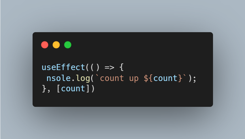 console.log(`count up ${count}`);