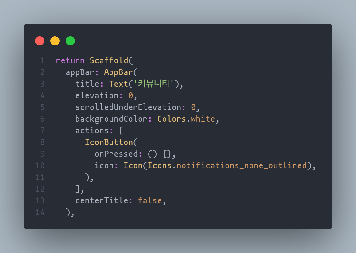 이걸 방지 하기 위해선 scrollerUnderElveation 속성을 써야 합니다.