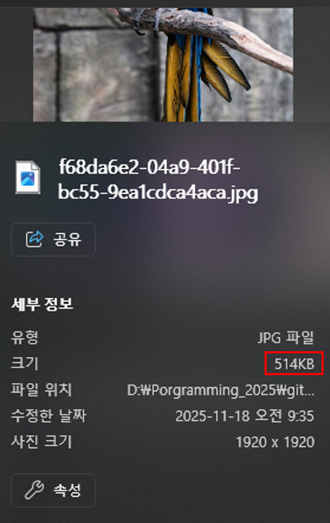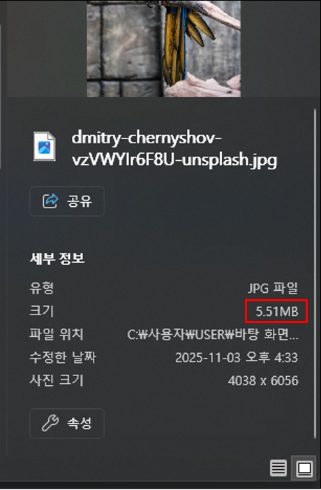 실제 5.51MB 의 용량이 큰 이미지로 테스트 해보겠습니다.