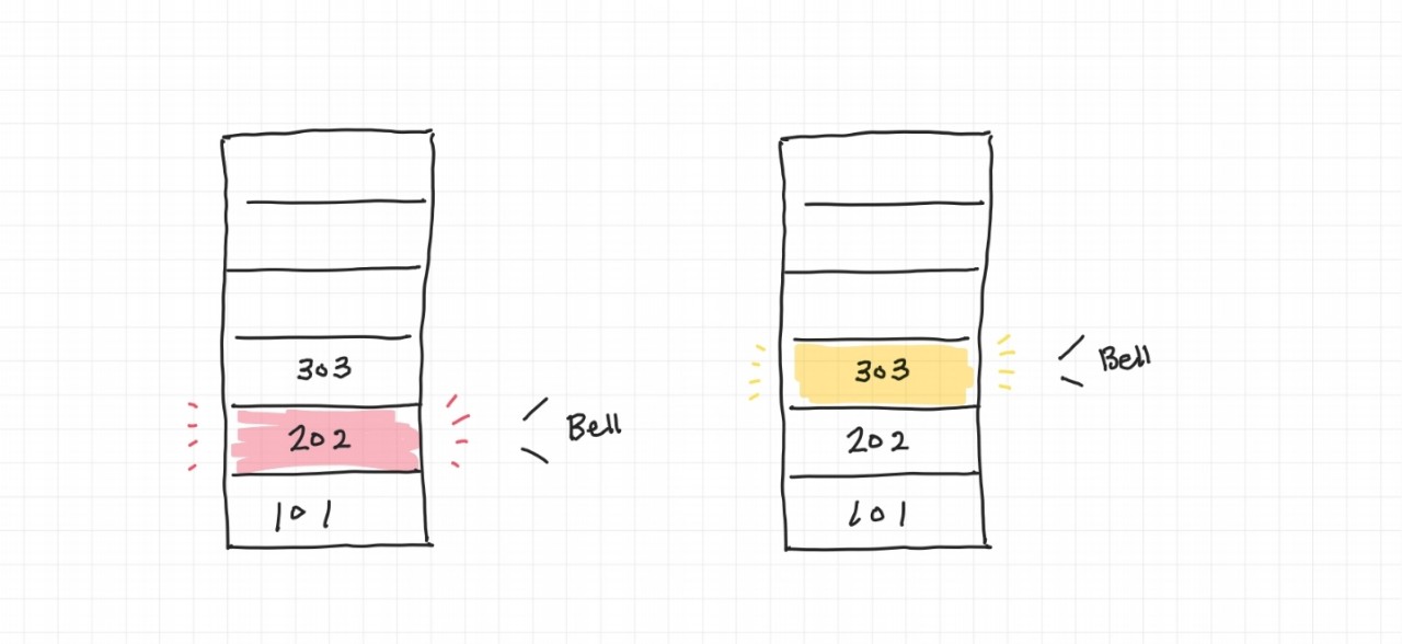 부모 컴포넌트가 Re-Rendering이 되면서 데이터가 바뀌며 202호 벨(props)를 눌렀지만 303호 벨 까지 눌러지는 상황이 발생이 된겁니다. 또한 303호 벨을 누르자 202호 벨까지 울리게 되는거죠.