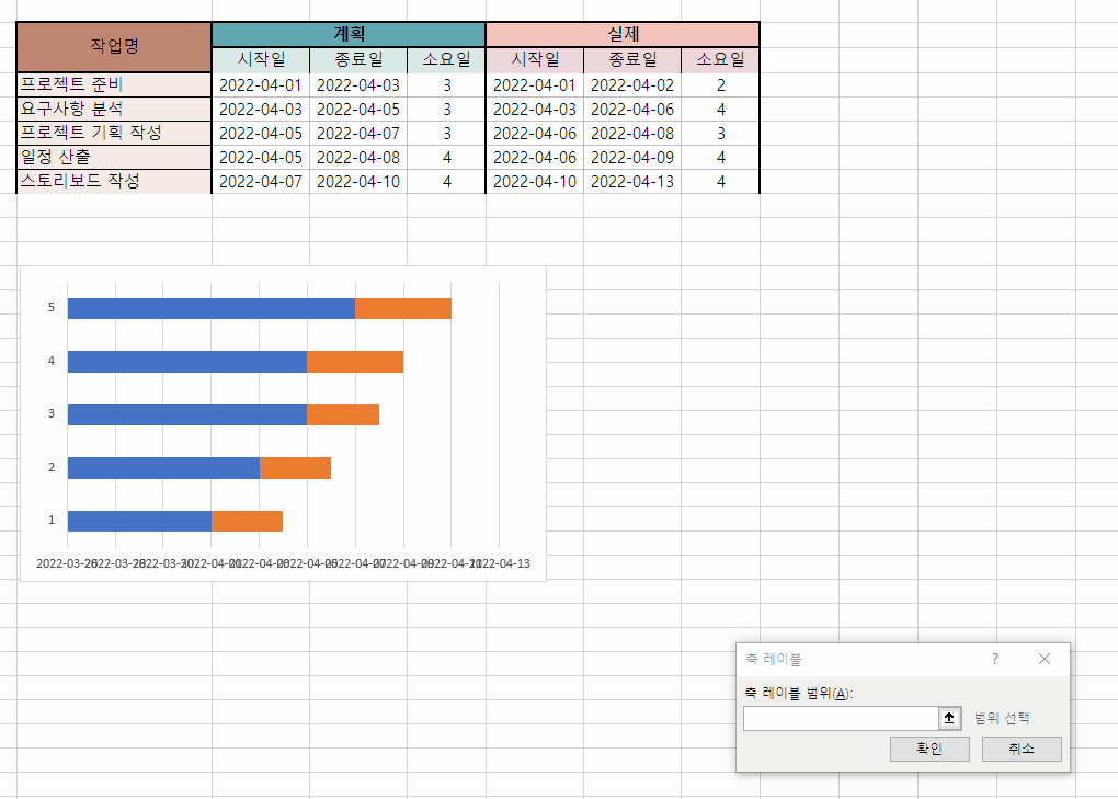 | 간트 차트 만들기 - 2 (0) | 2022.04.16 |