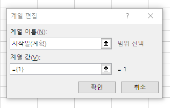 계열, 이름에 시작일(계획)이라고 넣은 뒤