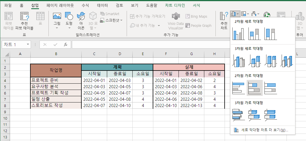 2. 차트 막대 만들기