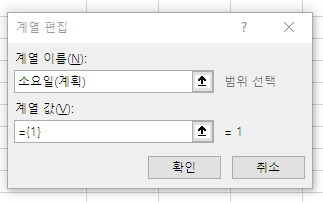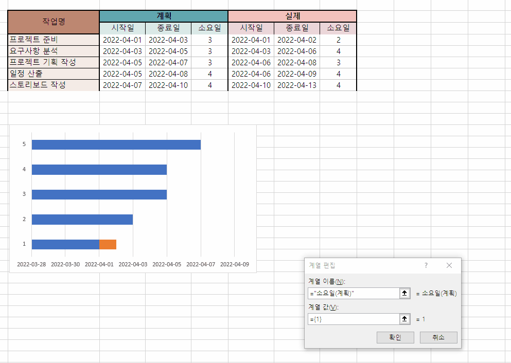 계열 값을 누르고 계획의 소요일들을 가져와줍니다.