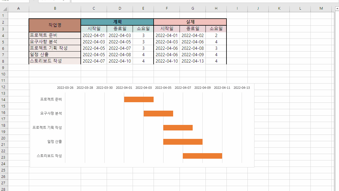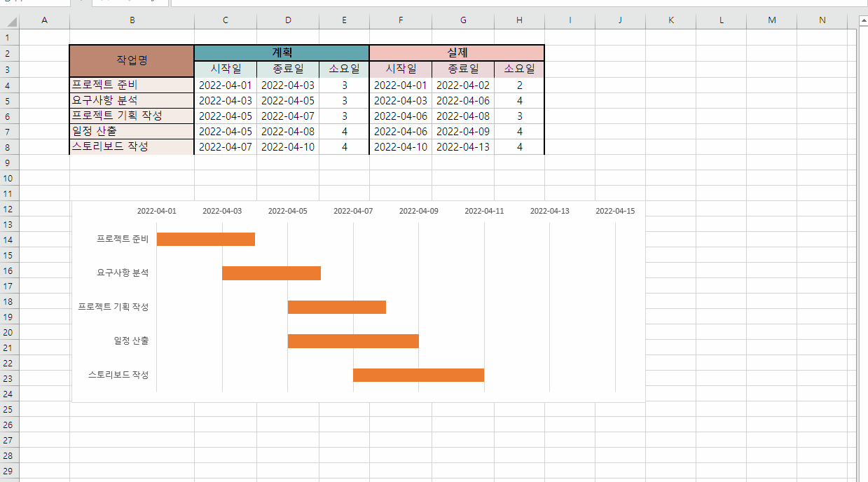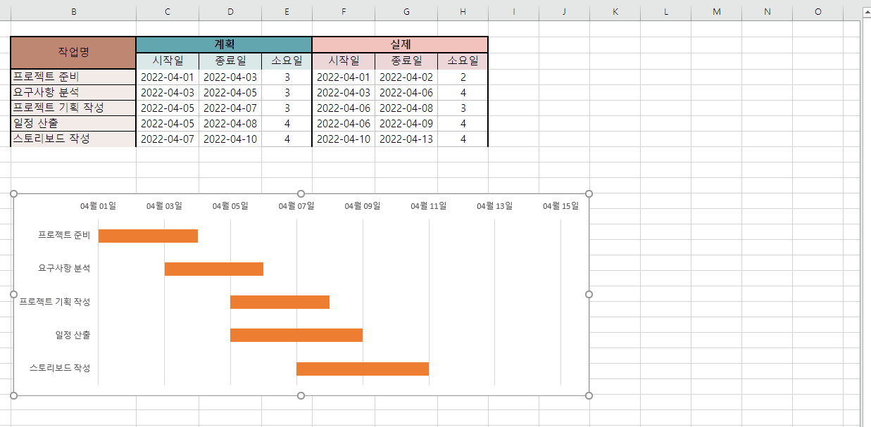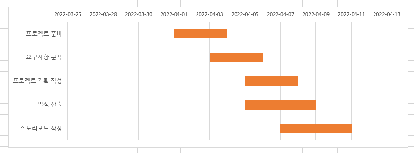 | 간트 차트 만들기 - 1 (0) | 2022.04.15 |