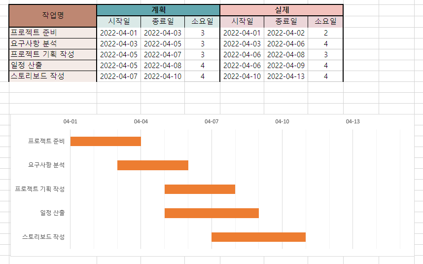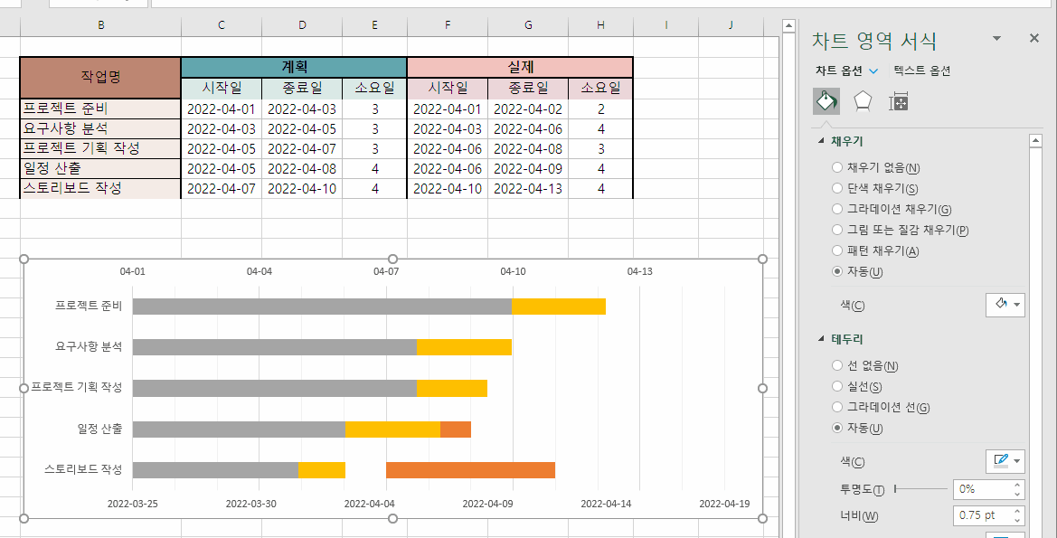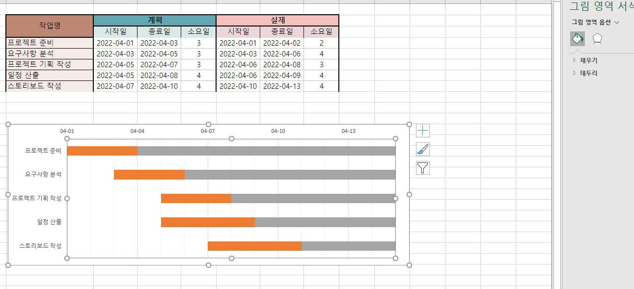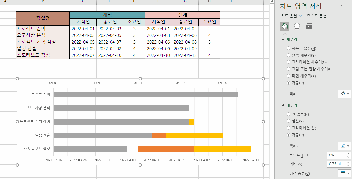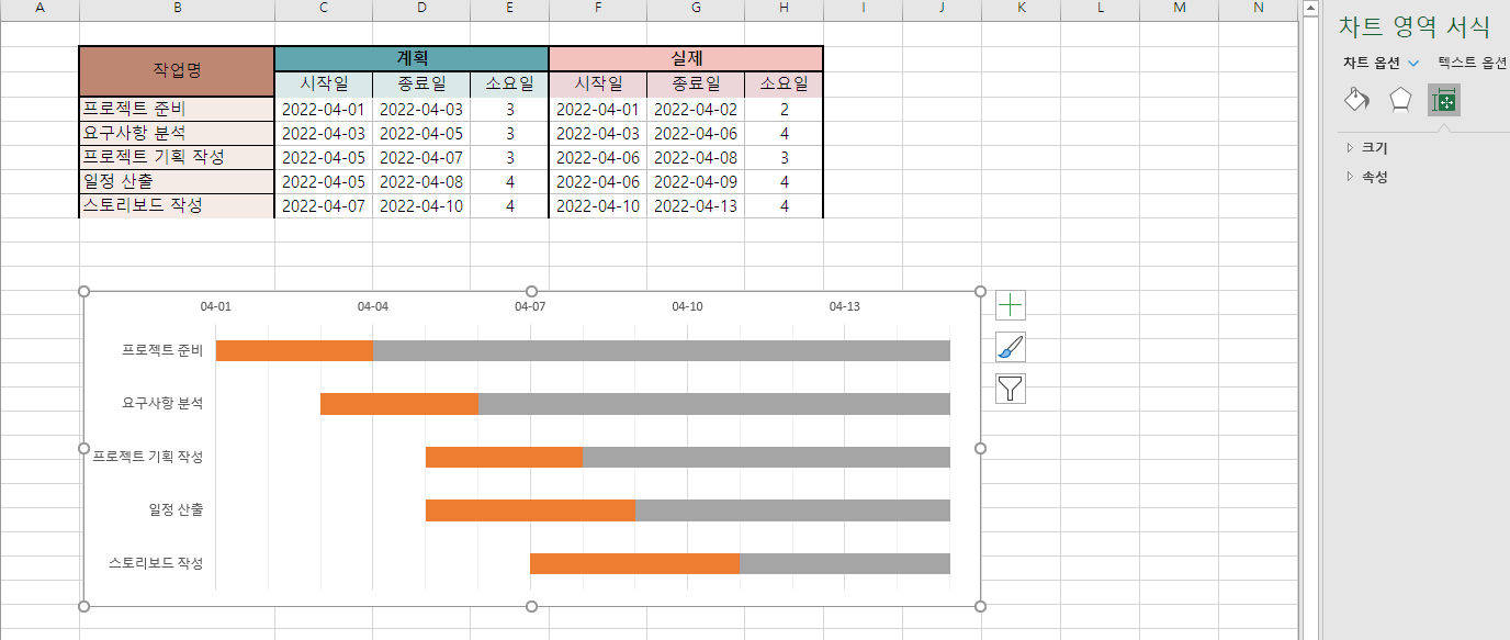 | 간트 차트 만들기 - 2 (0) | 2022.04.16 |