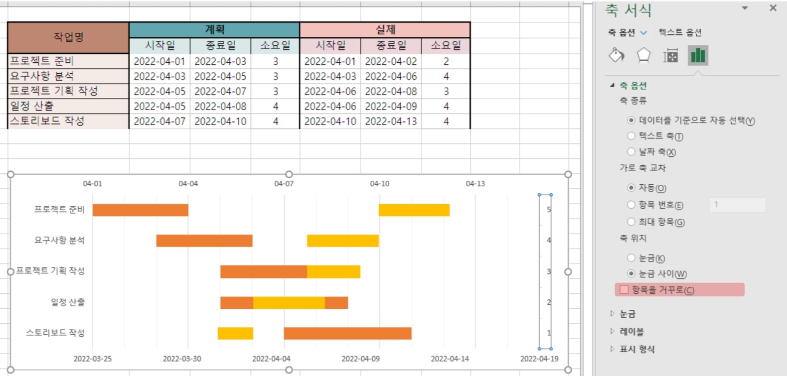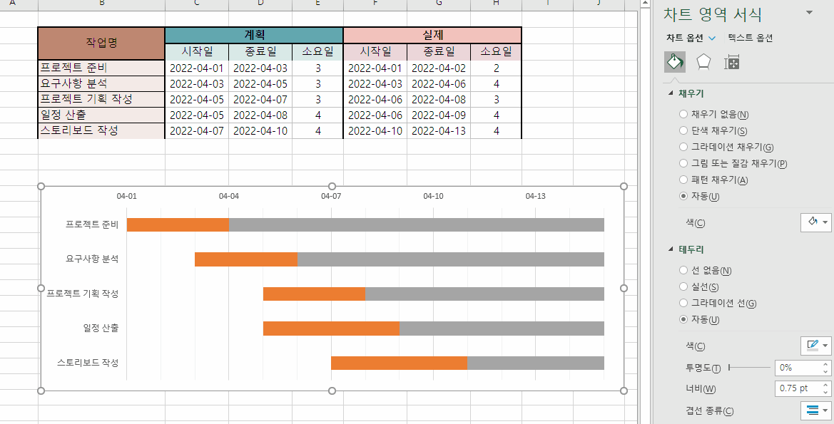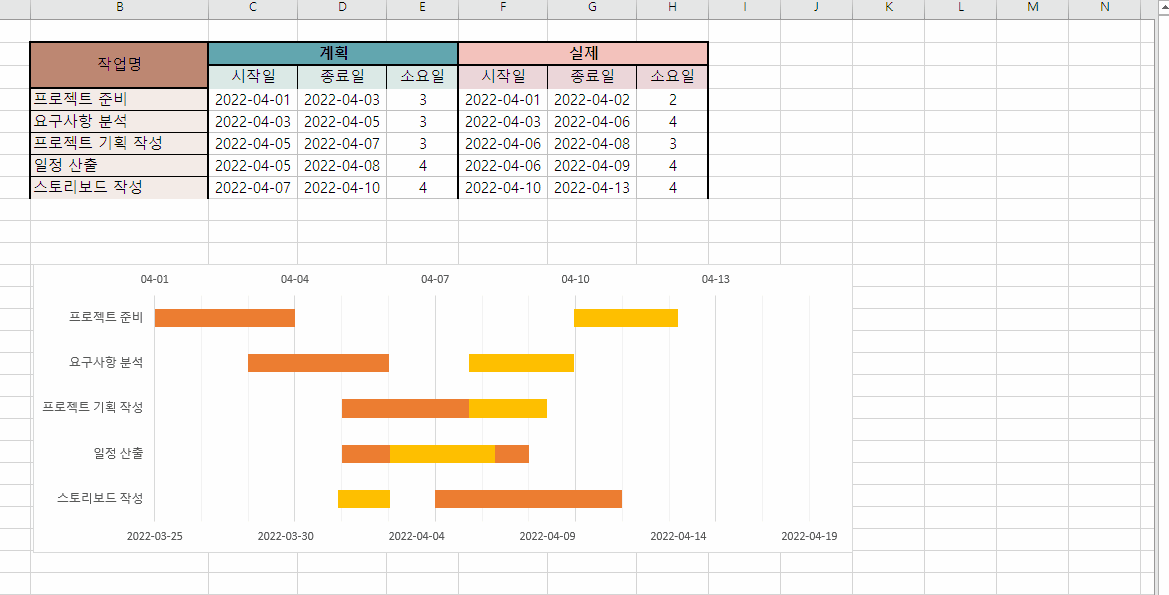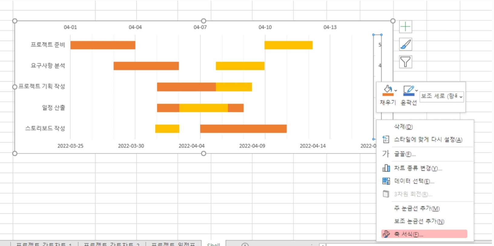 | 간트 차트 만들기 - 2 (0) | 2022.04.16 |