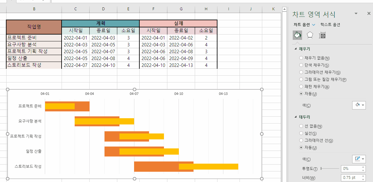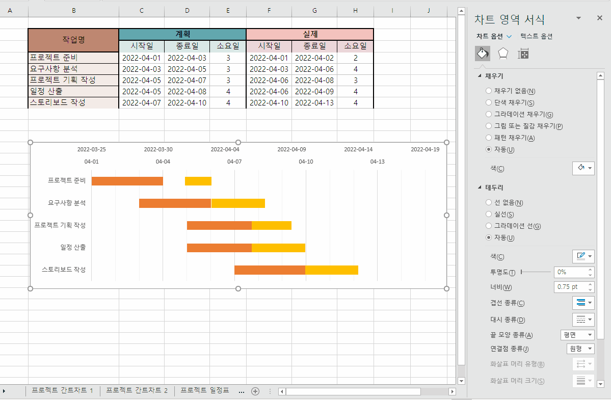 | 간트 차트 만들기 - 2 (0) | 2022.04.16 |