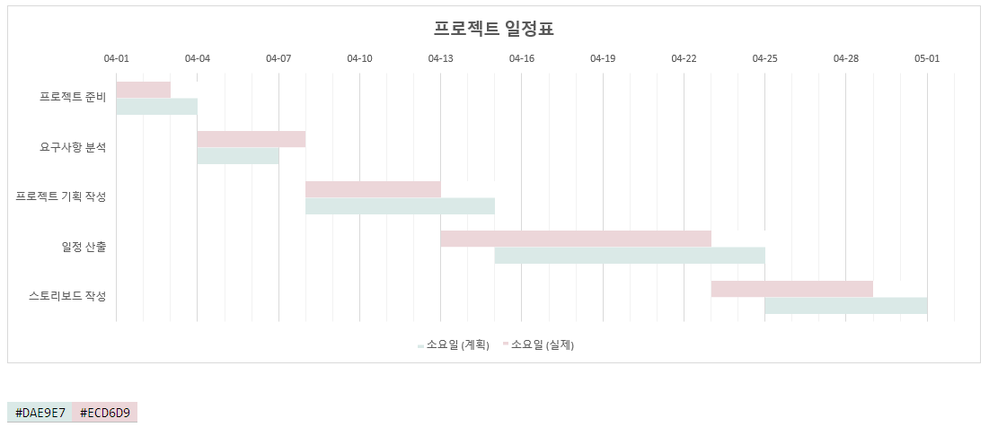 이렇게 하면 엑셀로 만들어보는 프로젝트 간트차트 끝입니다