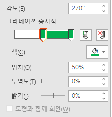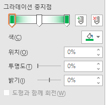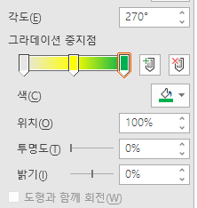 그리고 첫 번째 위치로 가서 위치 0% 메인 색상 (초록색) 으로 만들어줍니다.