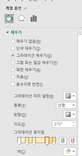 차트 영역 서식 - 차트 옵션 - 계열 소요일(계획) - 채우기 - 그라데이션 채우기 클릭