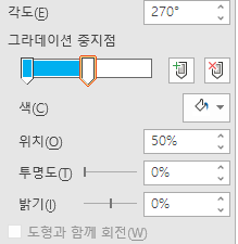 중간 부분을 위치 50% 해주고 메인 색상(파란색) 으로 해줍니다.