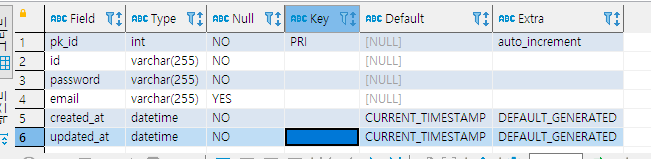 DESC로 테이블을 확인해보면 id의 type이 int로 변경이 되었고 isAdmin 컬럼이 추가된 것을 확인할 수 있습니다.