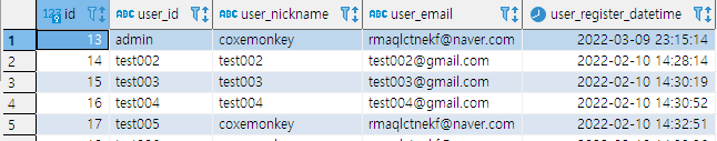 예시로 예전에 유저 관리하던걸 가져왔습니다 (임시로 만든 데이터들이니 걱정마세용)