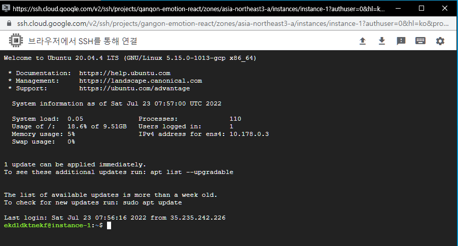 | [GCP VM 인스턴스] Node.js 설치 및 실행 (0) | 2022.07.24 |