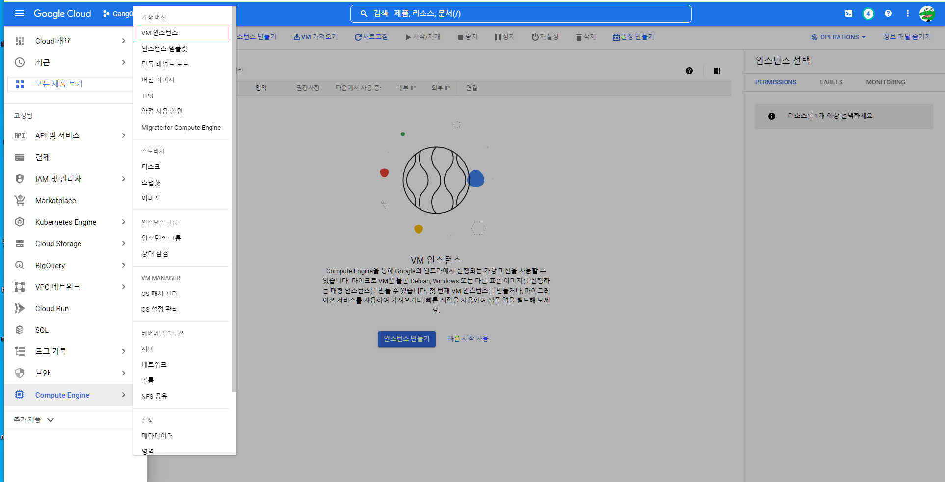 2. 그리고 VM 인스턴스를 눌러줍니다.